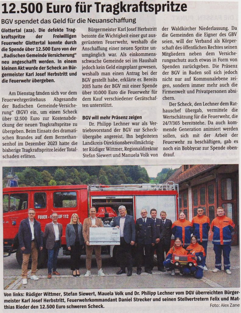 - Pressebericht Einsatz 29 und Spende der BGV hinzugefügt